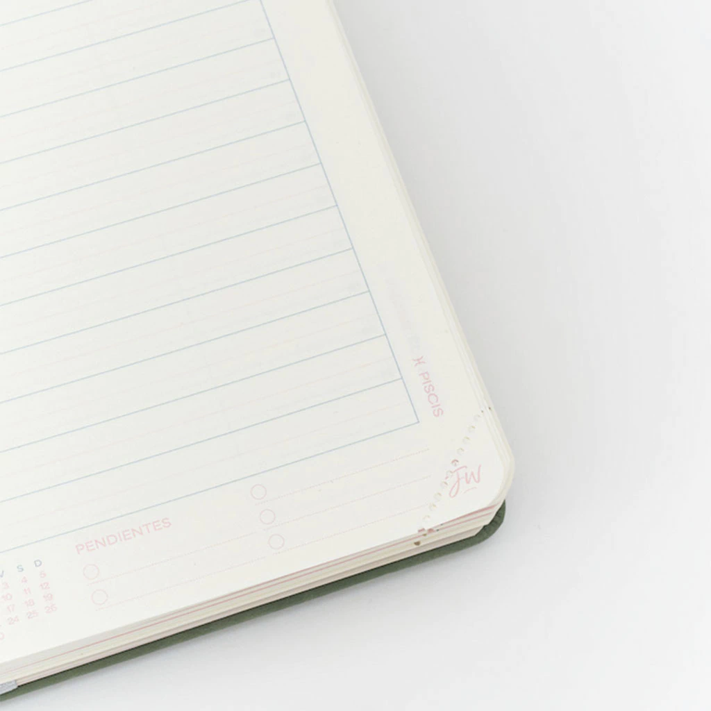Pensando en tu comodidad, incorpora un sobre interno con diseño por línea para guardar documentos importantes, un troquel para señalar hojas y un planner anual que te ayuda a visualizar tus metas a largo plazo.