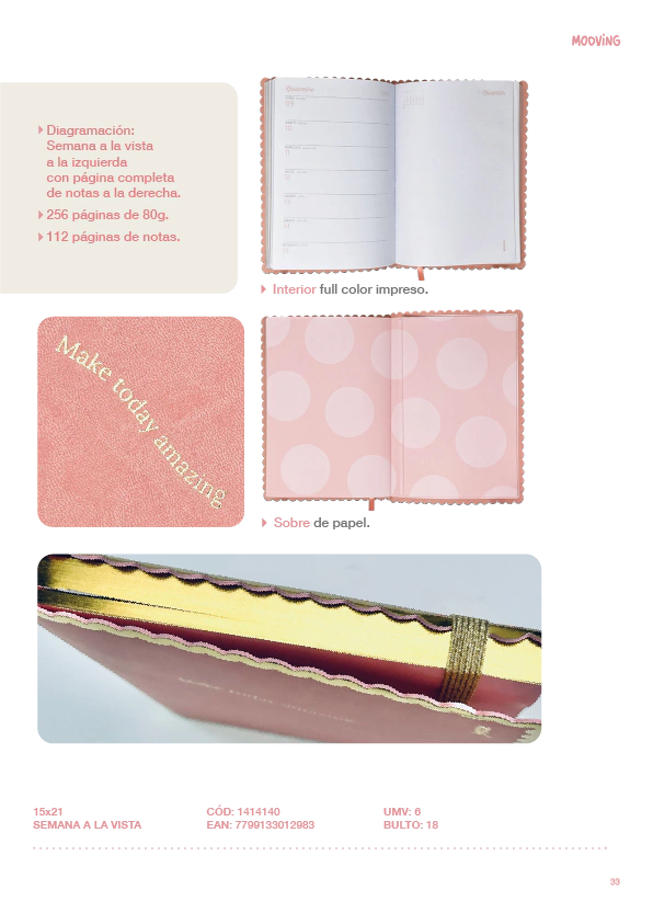 Su diseño moderno y colorido, característico de Mooving, aporta estilo y originalidad a tu organización diaria. El papel de alta calidad evita el traspaso de tinta, garantizando una escritura fluida y limpia en cada página.