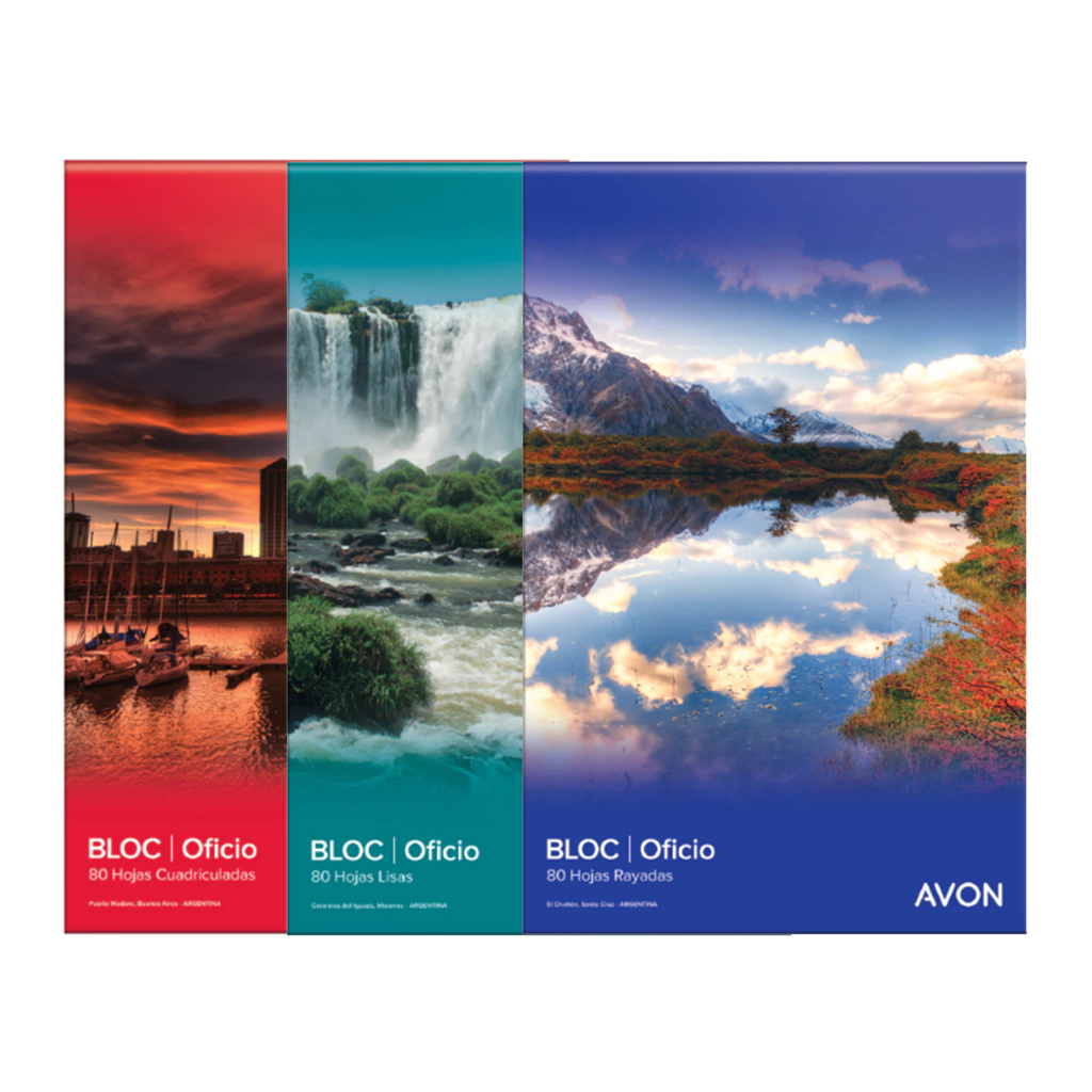 Block Avon encolado de 80 hojas. Estan agujereadas al costado para que puedan ser encarpetadas.
