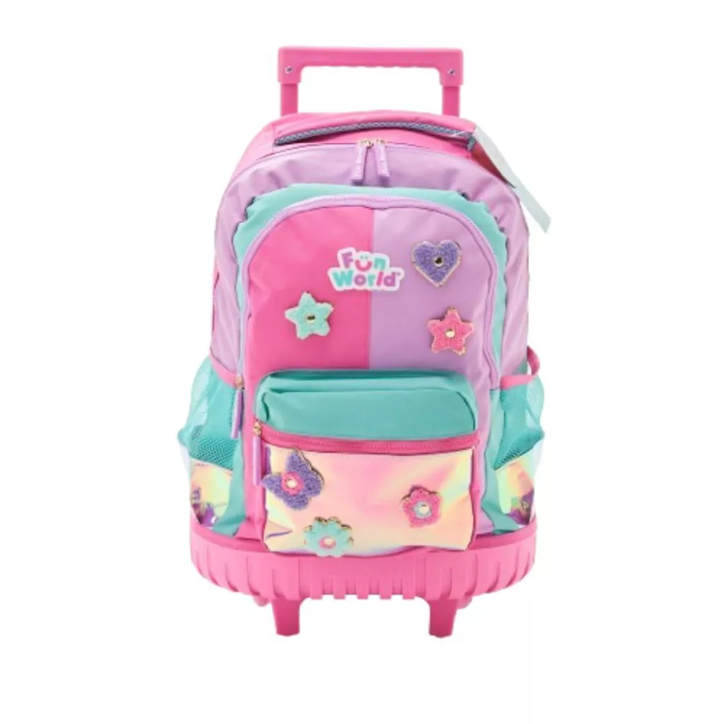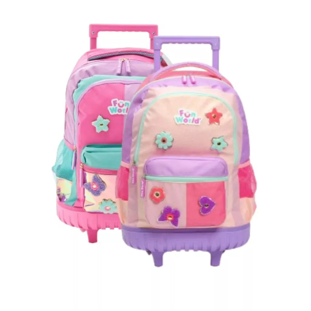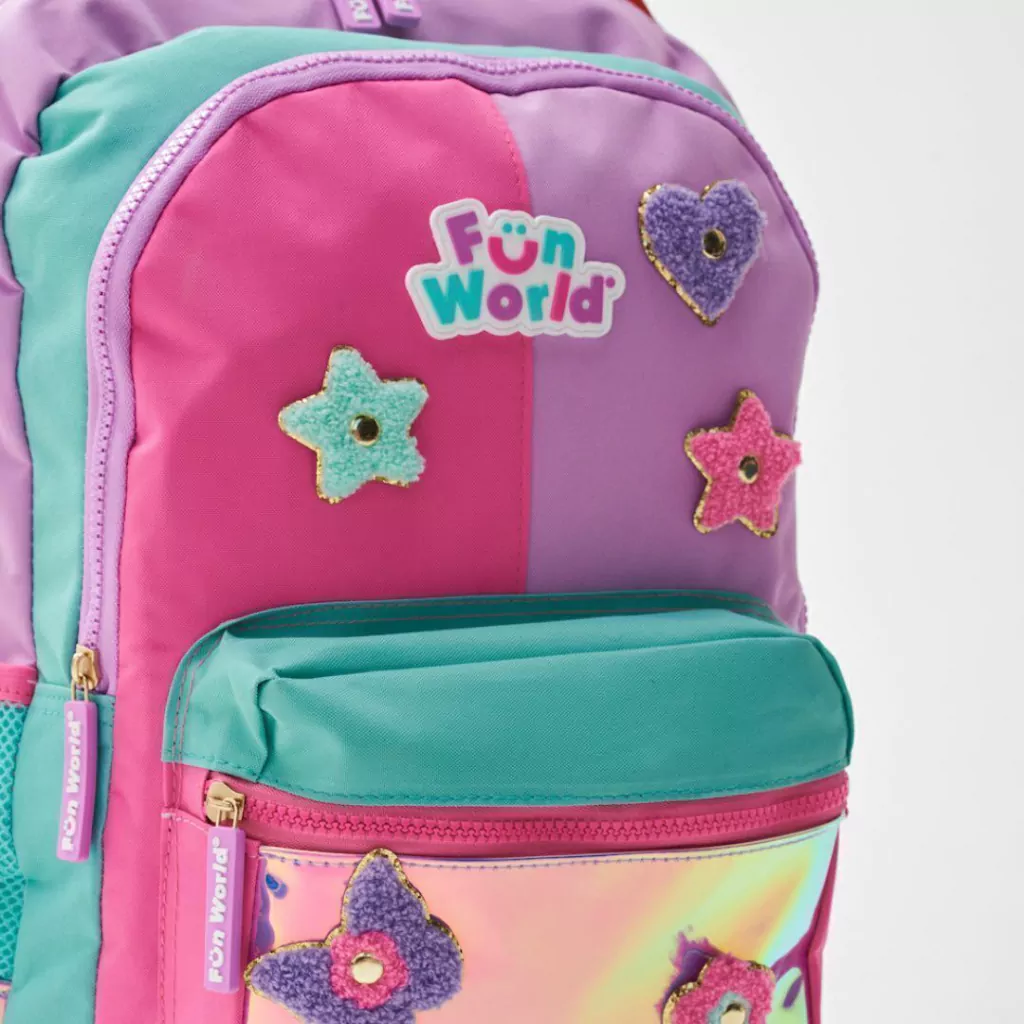 Mochila FW de la linea Fun World con 3 bolsillos. En el bolsillo principal tiene un compartimiento especial elastizado para poder ordenar las cosas, y el 3er bolsillo es frontal de rapido acceso. Tambien tiene 2 bolsillos elastizados de red a los costados. Cuenta con varios parches con boton intercambiables para que la decores como vos quieras!