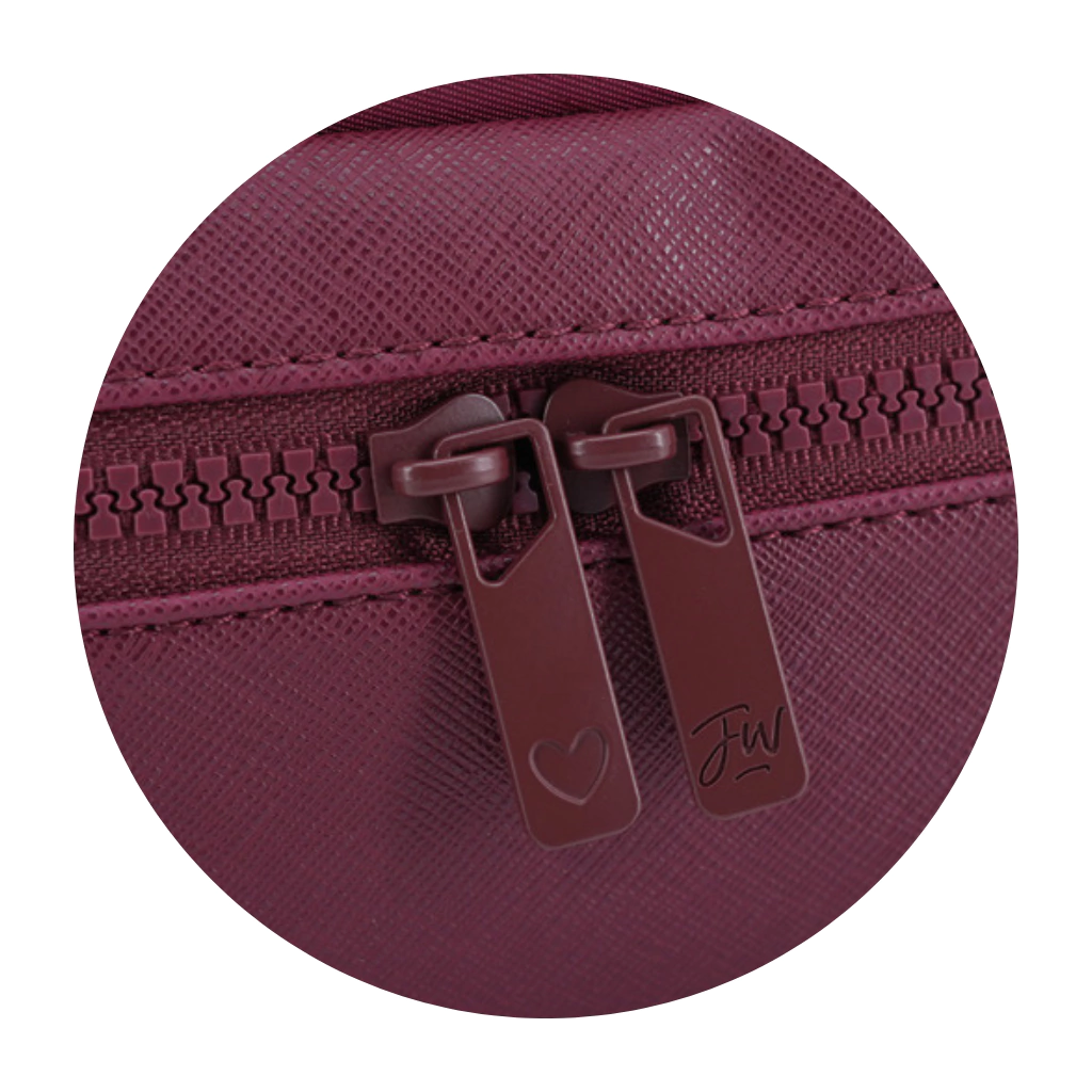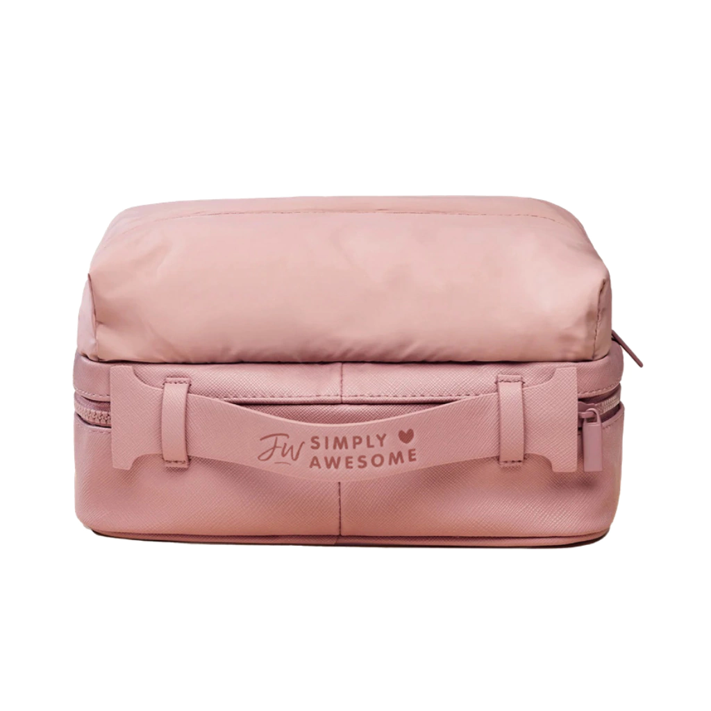 · Organizador con divisiones desmontables · Compartimento superior con cierre flexible · Compartimento secundario con apertura 180° · Materiales: PU + polyester · Doble tirador para mayor seguridad · Manija superior grabada para fácil transporte